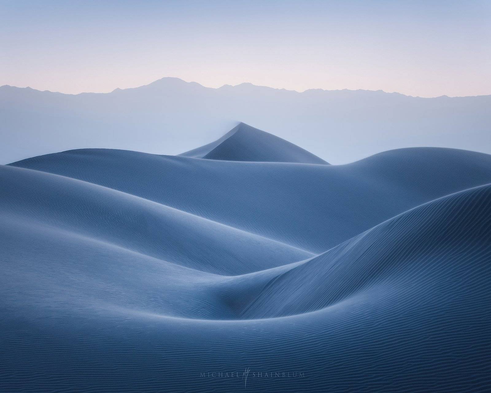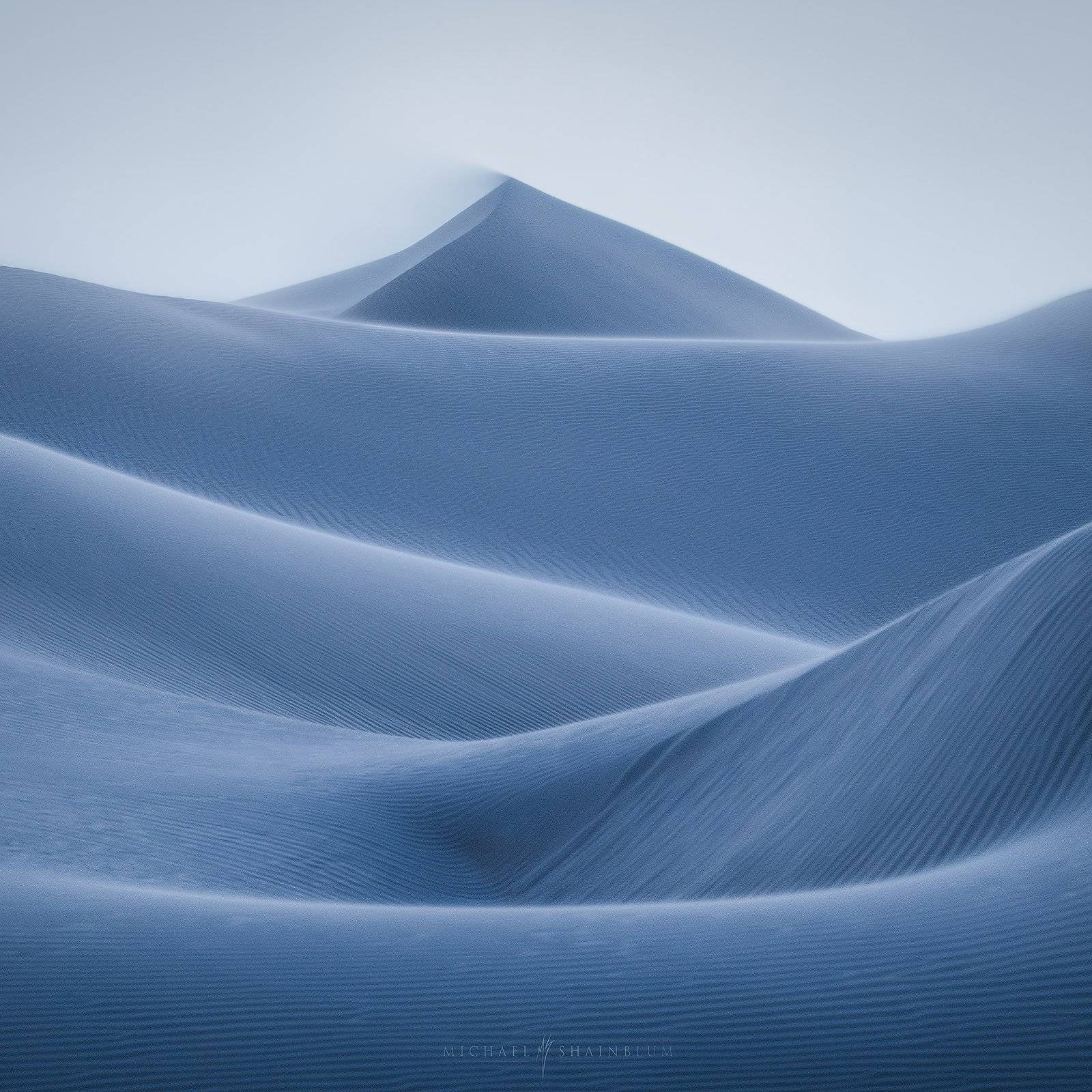 Post sunset light is some of my favorite light to create soft minimalist photography in. I talk about the differences a bit in the video. This image above ended up being my favorite blue hour shot from the day. The simple shapes/patterns worked really well here and that little bit of sand dusting across the top of the dune, I felt like was a really nice touch to this image.