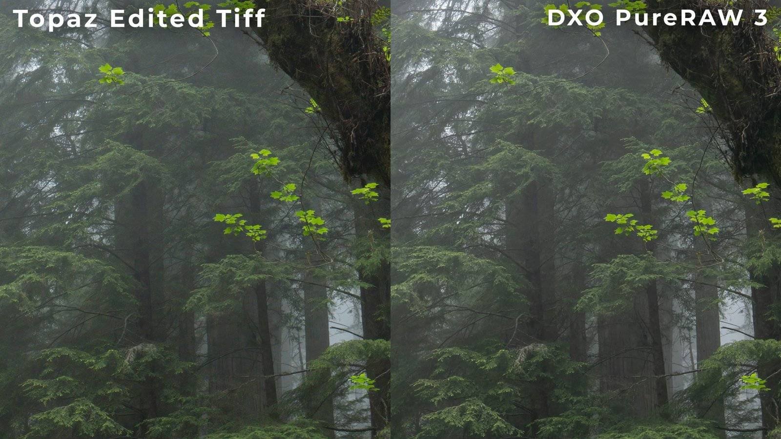 Here is DXO Pure RAW vs the Topaz-edited TIFF. I think the colors look more natural in the Topaz edit, but the detail works a bit better in the DXO file. I almost feel like blending these two files 50% on top of each other would be the perfect mix here.