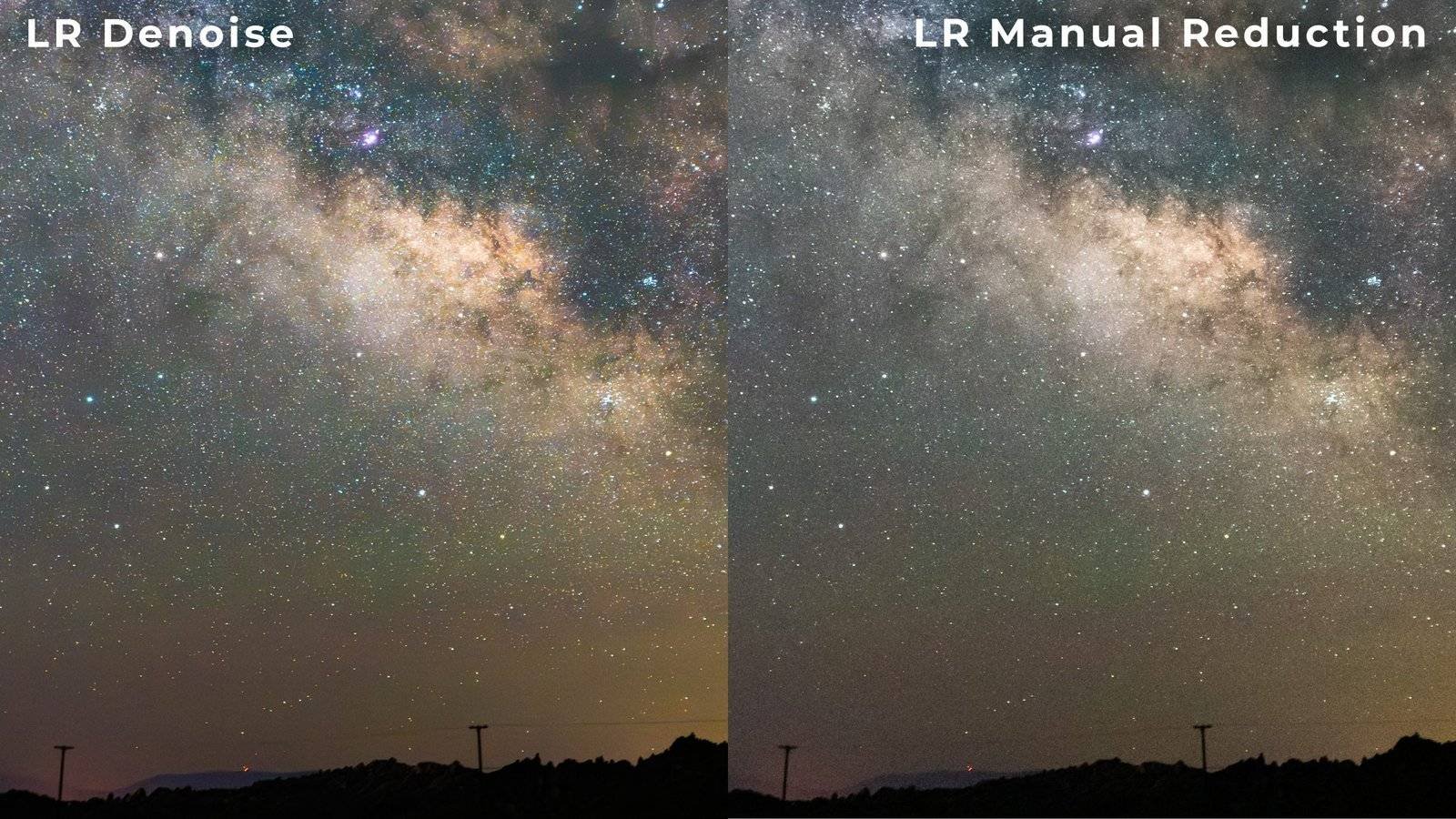 Here is an example of Lightroom Denoise vs manual noise reduction, and you can see just how much more detail is recovered in the Denoise version. I also think the colors remain intact, whereas the manual noise reduction introduces some muddiness to the colors. The Denoise does have some slight blotchiness in the empty patches. So it would be worth going through with a bit of extra manual color noise reduction to remove that.