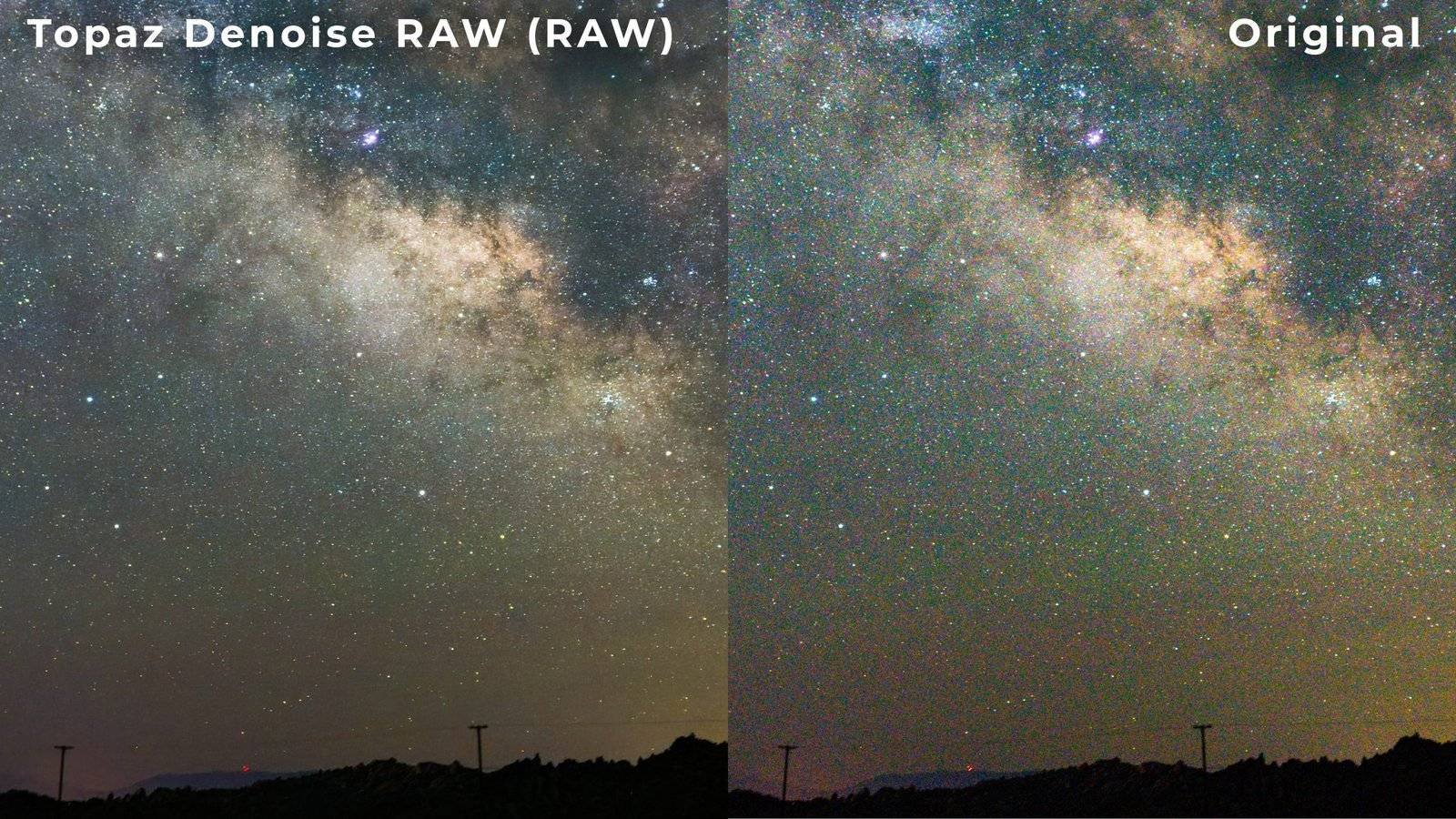 Here is the original image compared to our first Topaz export, and Topaz definitely does a good job of removing the noise. However, it’s worth noting that the colors do become a touch muddy in the process.
