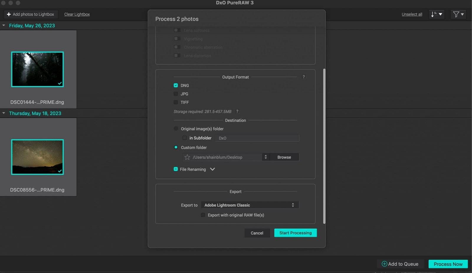 DXO is a super simple program. All you have to do is input the files, select your desired output, and the program will do the work for you. The simplicity of DXO is something to be appreciated.