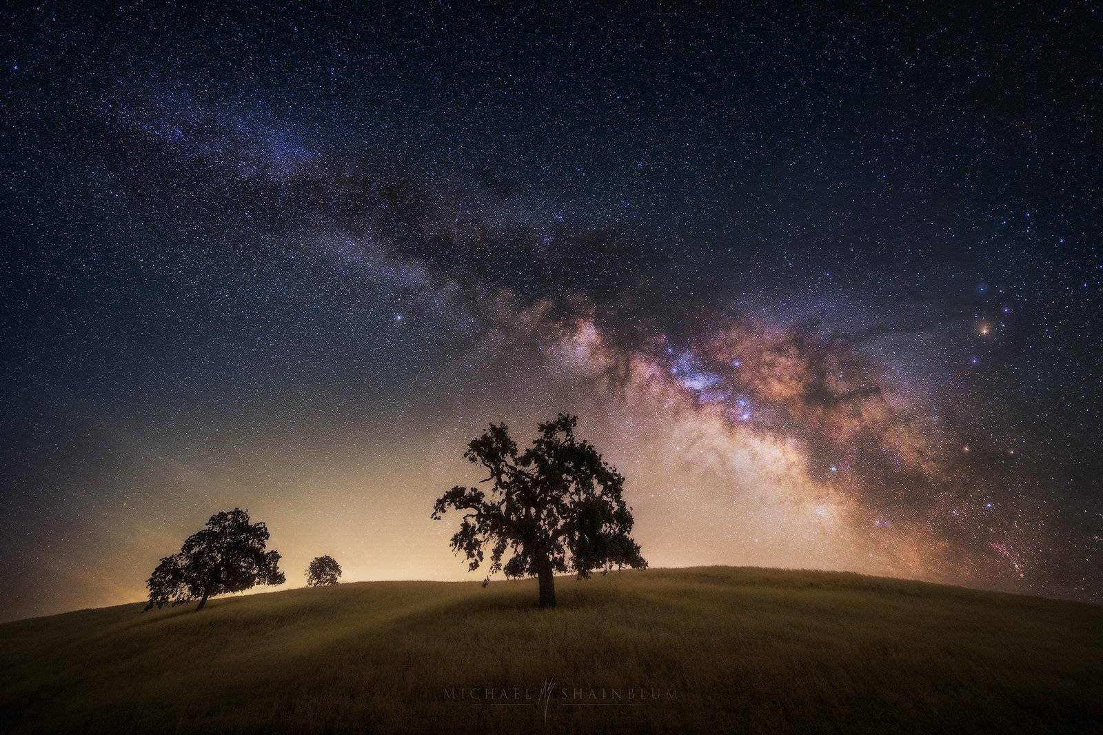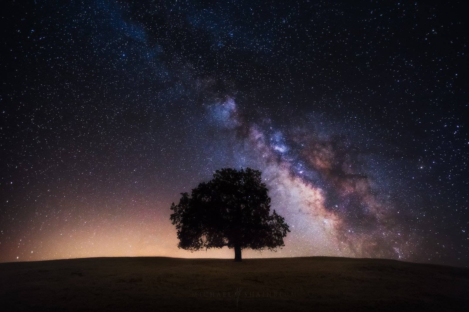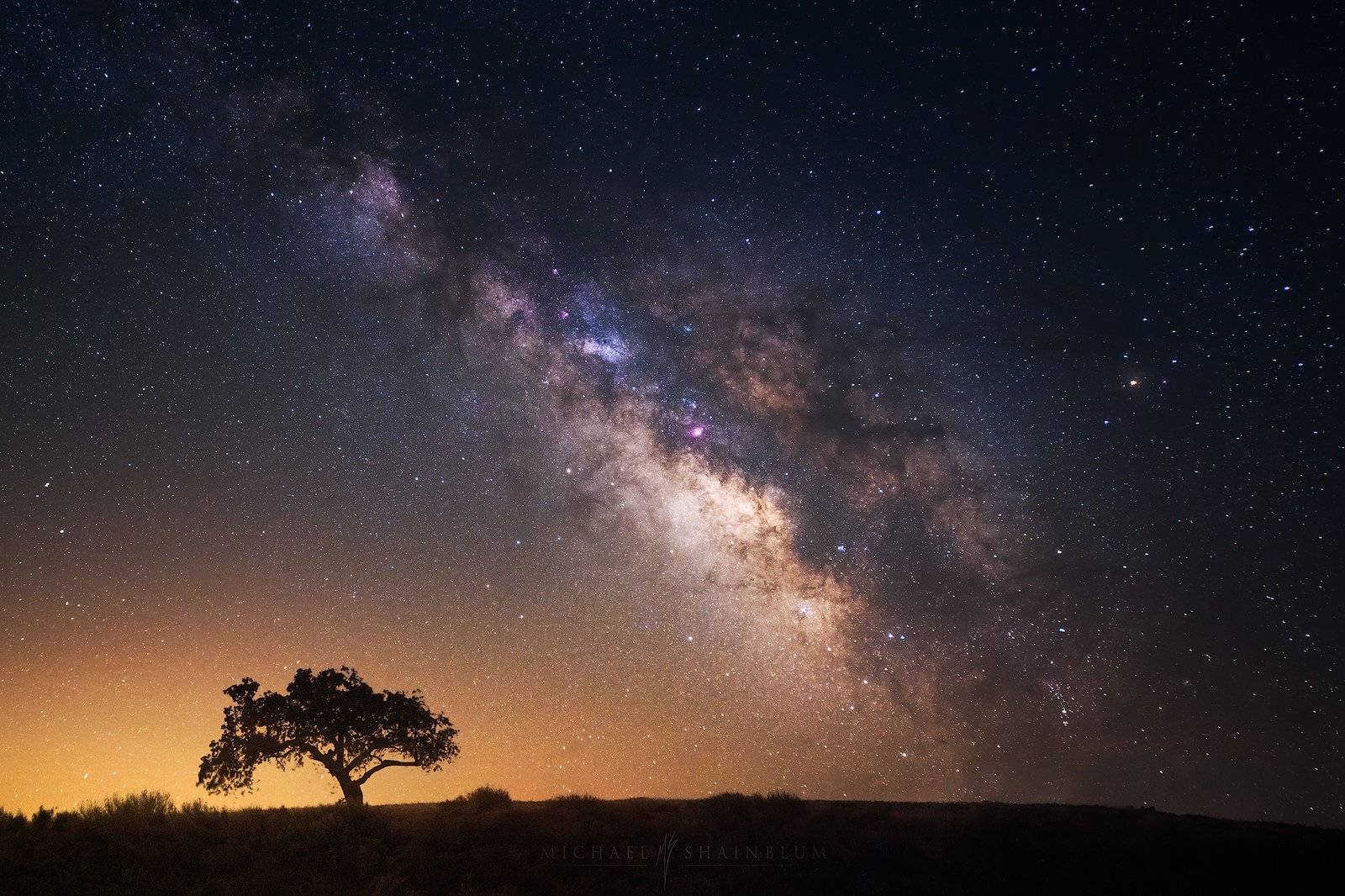 Here is one of my favorite astrophotography images, taken in Santa Barbara California. This was one of my first attempts at tracking the Milky Way to retain detail in the core. The tree was on top of a hill and I was standing at the bottom, giving me the ability to move around and plan the exact position to catch the Galaxy rising in the right spot. It also gave me the ability to get a clean Milky Way rising right above the horizon without a ton of light pollution.