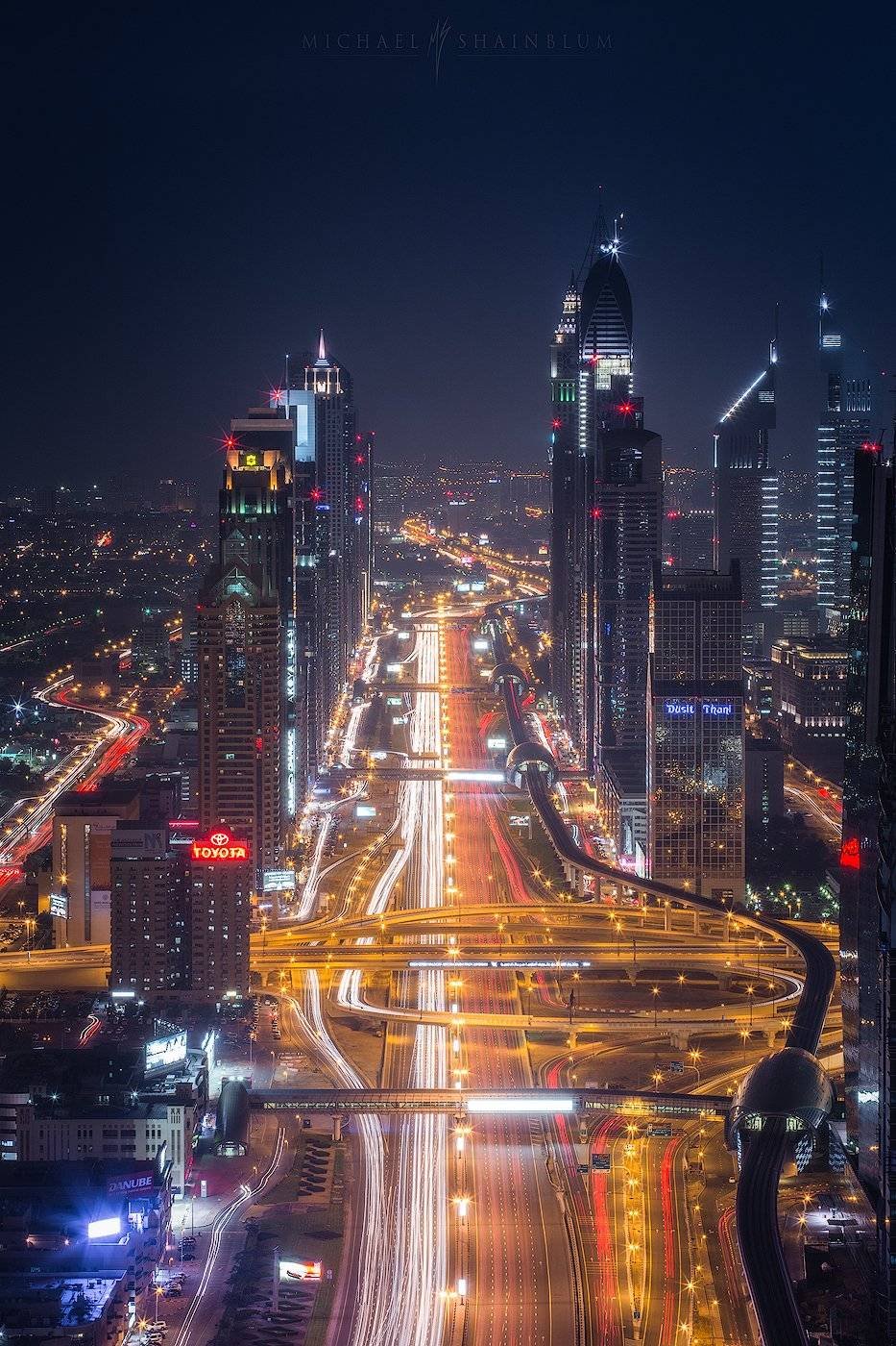 Capturing motion in Dubai is an easy task. The city is in constant motion with winding freeways, boat canals and air traffic.