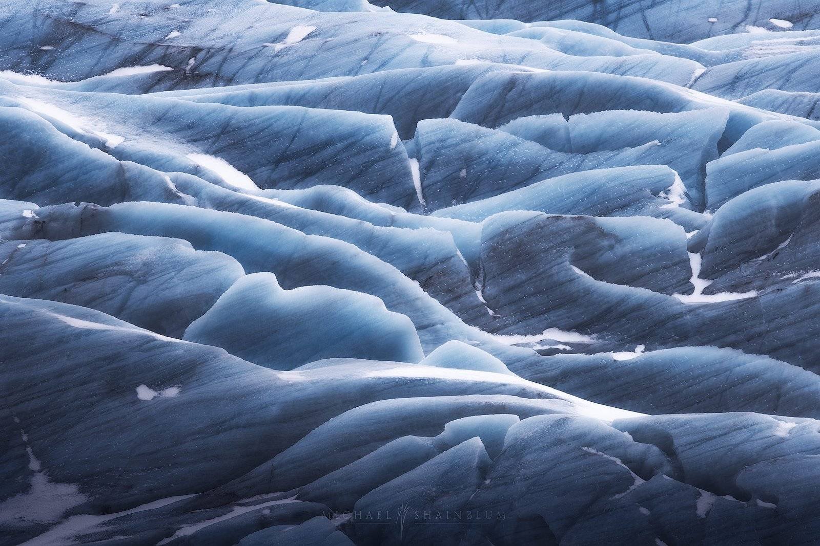 There are interesting patterns, colors and textures to be found in the glaciers of Iceland. I love the strong waves of the lines complemented by the deep black scars where the glacial ice has been grazed and sculpted over hundreds of years.