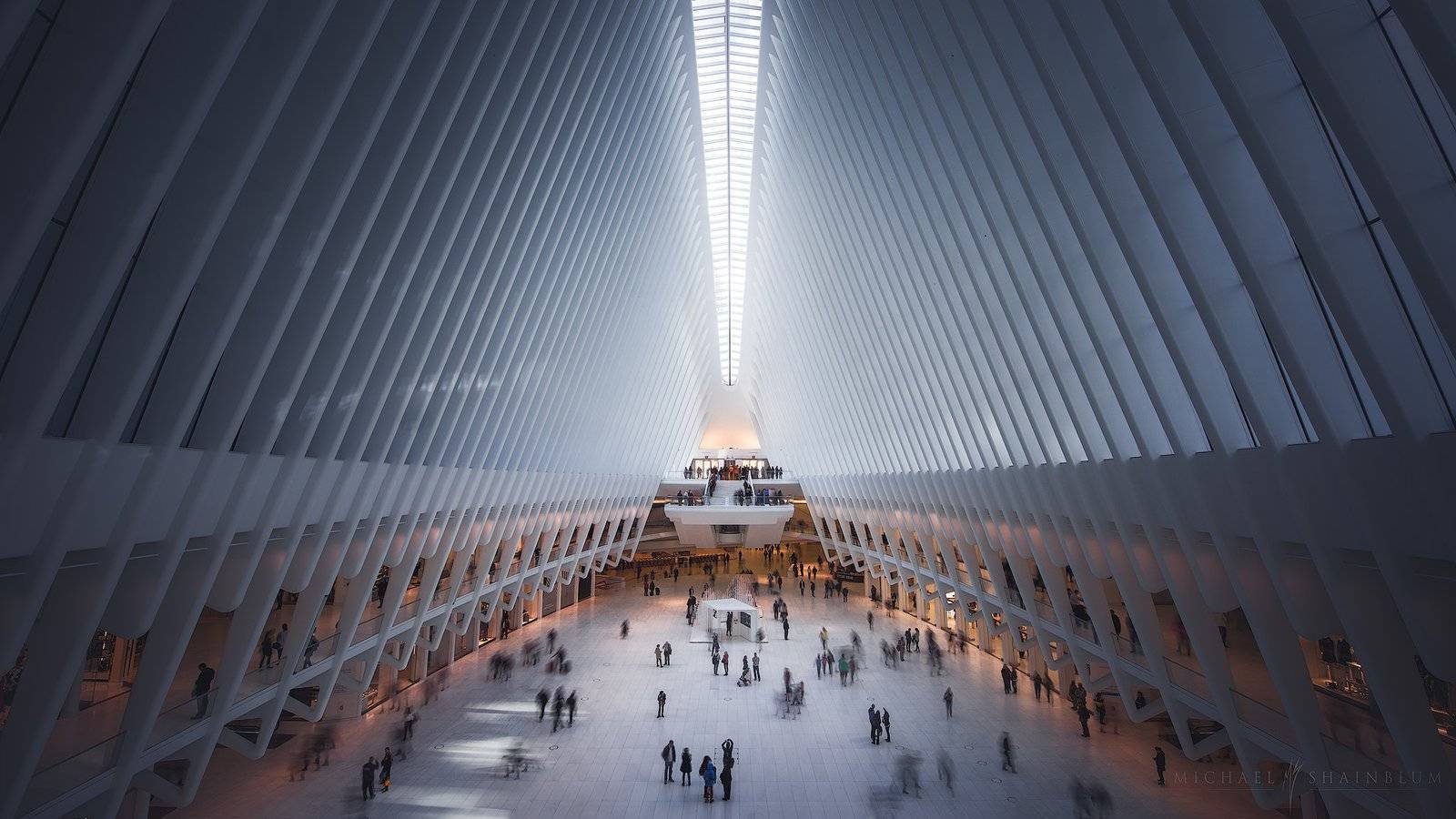 The lighting inside the Oculus building is just stunning. During the timelapse sequence the light glides across the ceiling, as the people float around towards the bottom.